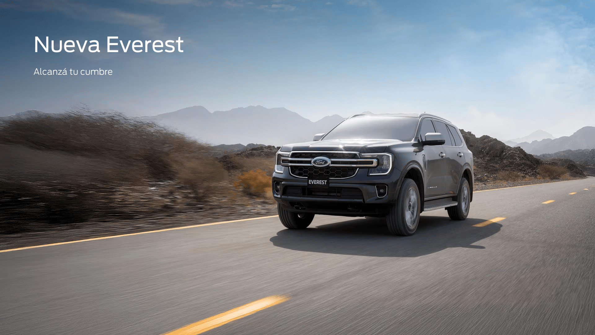 (*) PROMOCIÓN VÁLIDA PARA LA CARTERA DE CONSUMO DESDE EL 01/12/2025 AL 31/12/2025 EN LA REPÚBLICA ARGENTINA PARA LA FINANCIACIÓN EN LA COMPRA DE VEHÍCULOS EVEREST SUJETO A CONDICIONES PREVIAS DE CONTRATACIÓN, APROBACIÓN Y OTORGAMIENTO POR PARTE DE INDUSTRIAL AND COMMERCIAL BANK OF CHINA (ARGENTINA) S.A.U. (ICBC). PRÉSTAMO PRENDARIO EN PESOS EN 18 CUOTAS MENSUALES. TASA NOMINAL ANUAL: 0,00%. TASA EFECTIVA ANUAL: 0,00%. COSTO FINANCIERO TOTAL (CFT): 6,78%. SISTEMA DE AMORTIZACIÓN FRANCÉS. LAS CUOTAS CORRESPONDIENTES A ESTA FINANCIACIÓN INCLUYEN CAPITAL, INTERESES, IVA Y SEGURO DEL VEHÍCULO. TASA FIJA. VÁLIDO PARA TODAS LAS VERSIONES DE EVEREST. EJEMPLO PARA EVEREST Titanium CON UN COSTO DE PRIMA MENSUAL DEL SEGURO DEL VEHÍCULO $88.123 CON COBERTURA TERCEROS COMPLETO BÁSICO RADICADO EN LA CIUDAD AUTONOMA DE BUENOS AIRES. PRECIO SUGERIDO CONTADO: $91.454.000. LOS PRECIOS TIENEN IVA INCLUÍDO. NO INCLUYEN GASTOS, FLETE NI SEGURO DEL FLETE. NO INCLUYE GASTOS DE PATENTAMIENTO. MONTO MÁXIMO A FINANCIAR SOBRE PRECIO: $30.000.000. ANTICIPO: $61.454.000. PRÉSTAMO PRENDARIO CON CUOTAS DE $1.754.791 MÁS IVA SOBRE INTERESES. LA FINANCIACIÓN SE APLICARÁ SOBRE EL MEJOR PRECIO ACORDADO ENTRE EL CLIENTE Y EL CONCESIONARIO. STOCK: 35 UNIDADES. ORIGEN DEL PRODUCTO: ARGENTINA. PARA MAS INFORMACION CONSULTE EN NUESTRA RED DE CONCESIONARIOS OFICIALES FORD O INGRESE A WWW.FORD.COM.AR. FORD ARGENTINA S.C.A. FRENCH 3155 PISO 1°, CIUDAD AUTÓNOMA DE BUENOS AIRES. CUIT 30-67851968-1. ICBC ES UNA SOCIEDAD ANÓNIMA BAJO LA LEY ARGENTINA, SUS ACCIONISTAS LIMITAN SU RESPONSABILIDAD AL CAPITAL APORTADO (LEY N° 25738).